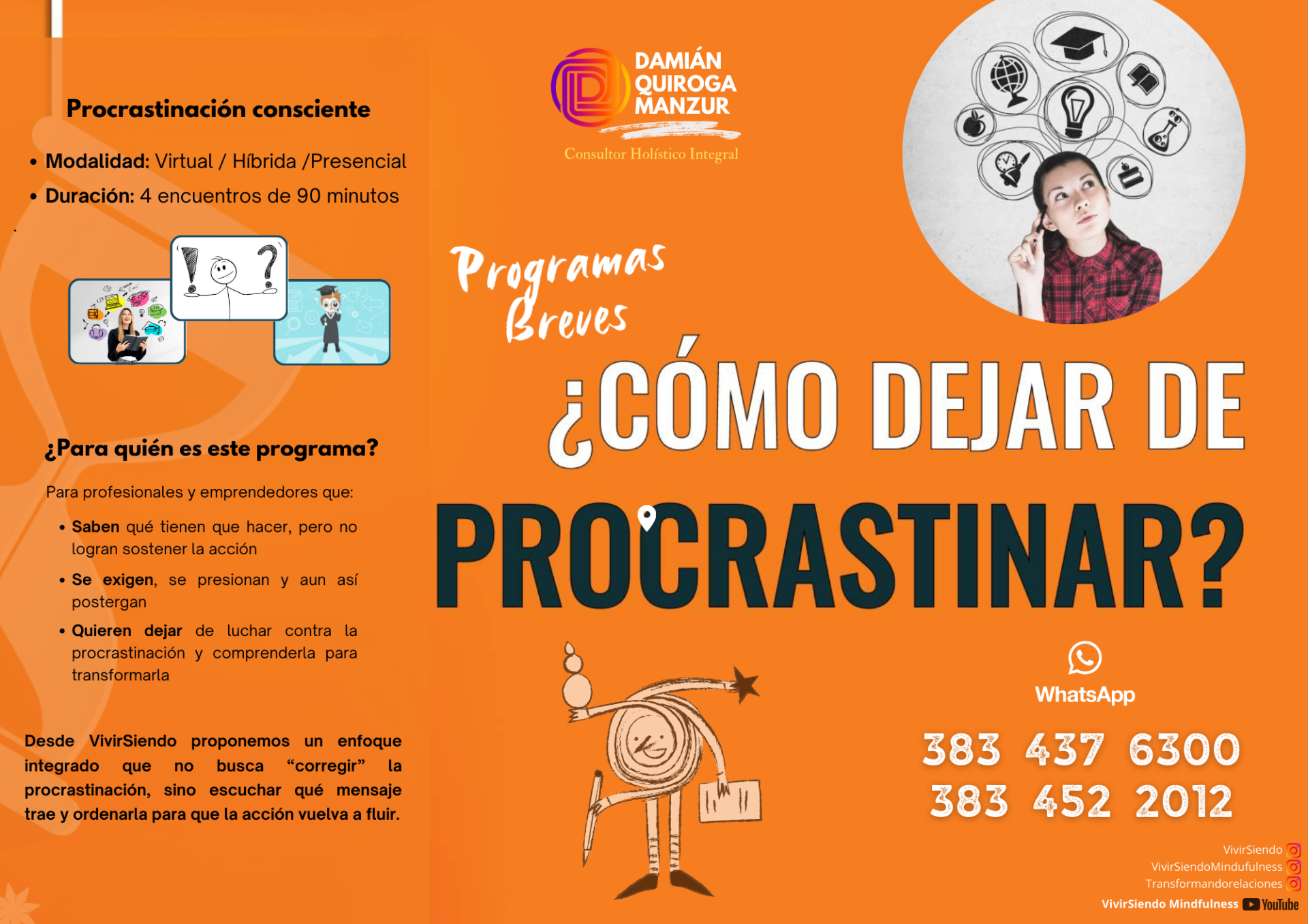 No dejés que la procrastinación te robe más tiempo y energía. ¡Inscríbite en nuestro curso "Cómo dejar de procrastinar" y comenzá a construir una vida más organizada y productiva!